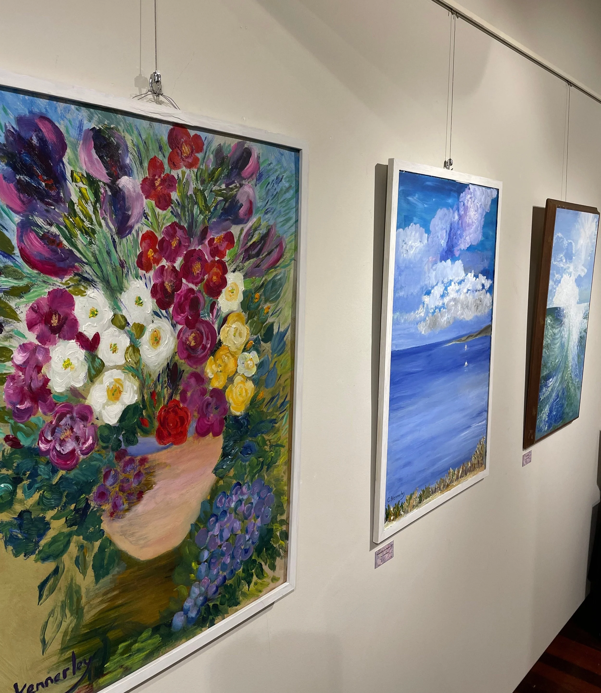 (L-R) Tranquility on Boston Bay & The Wave, 2023 & 1982, Oil on board, $450 & $2,800