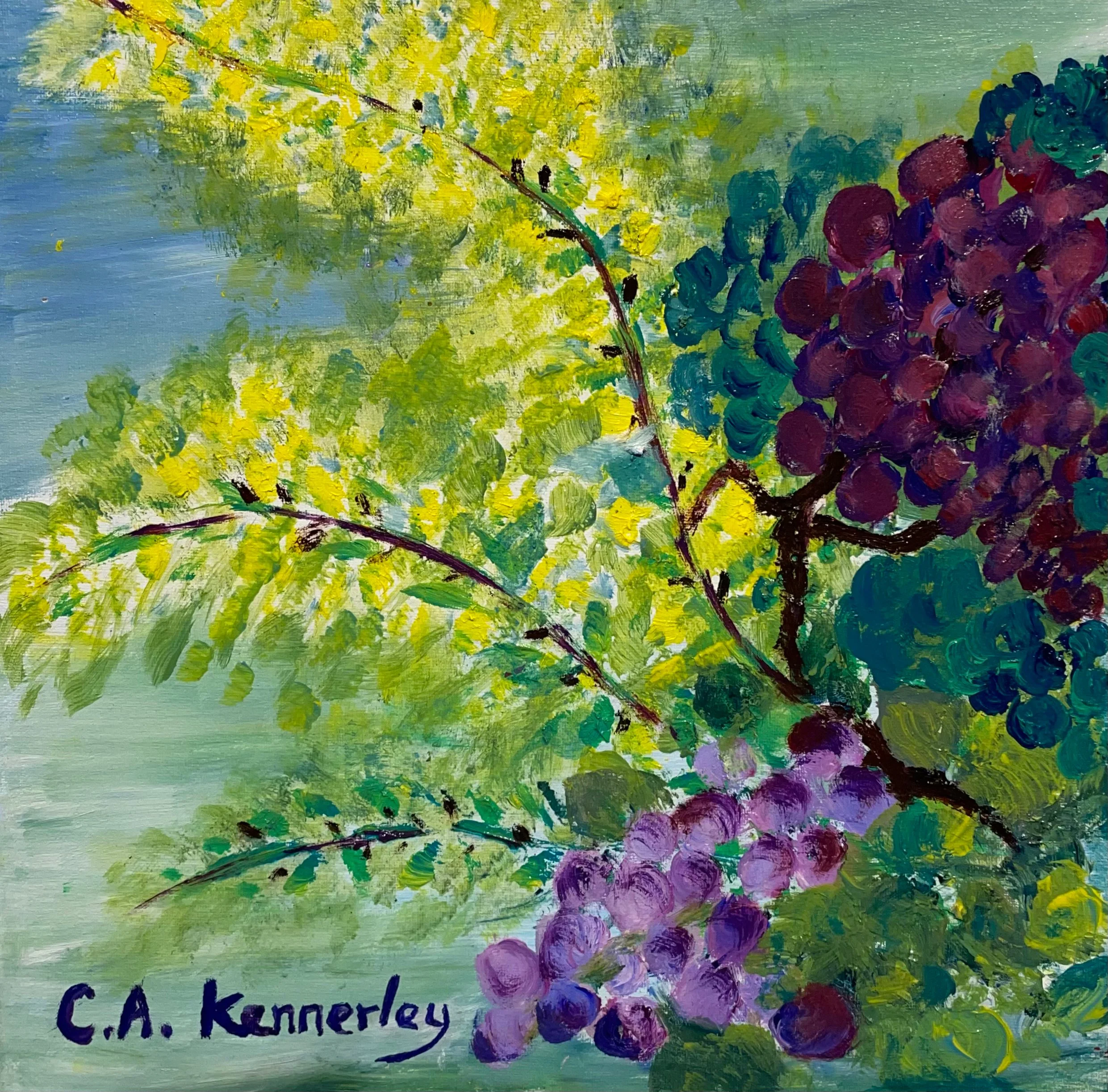 Wattle & Vines, 2022, Oil on canvas, $350