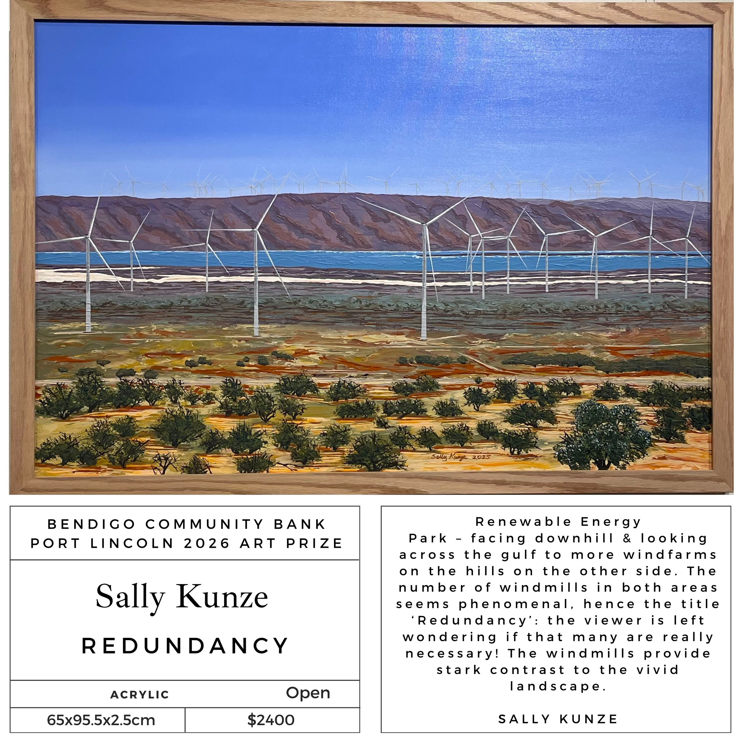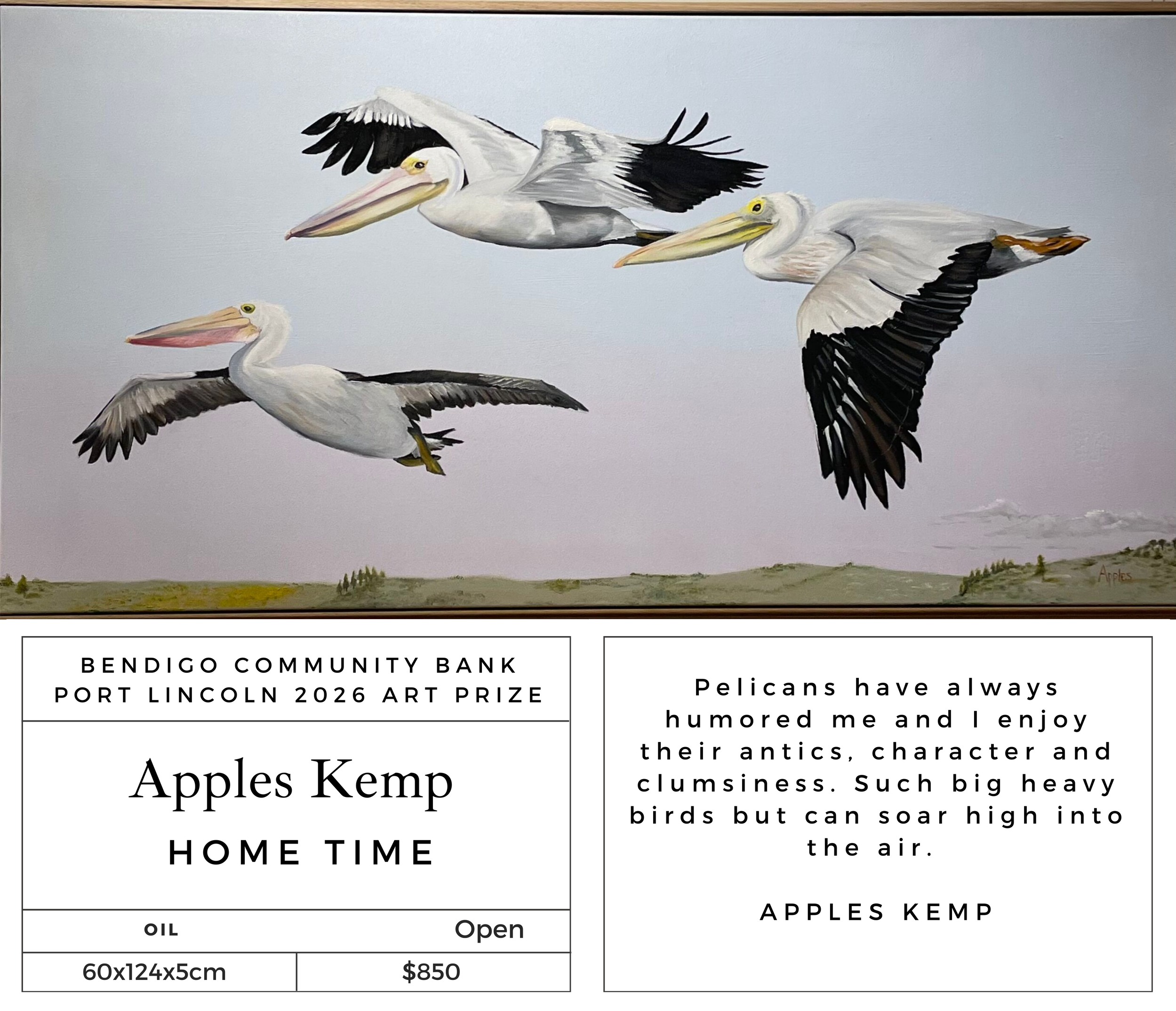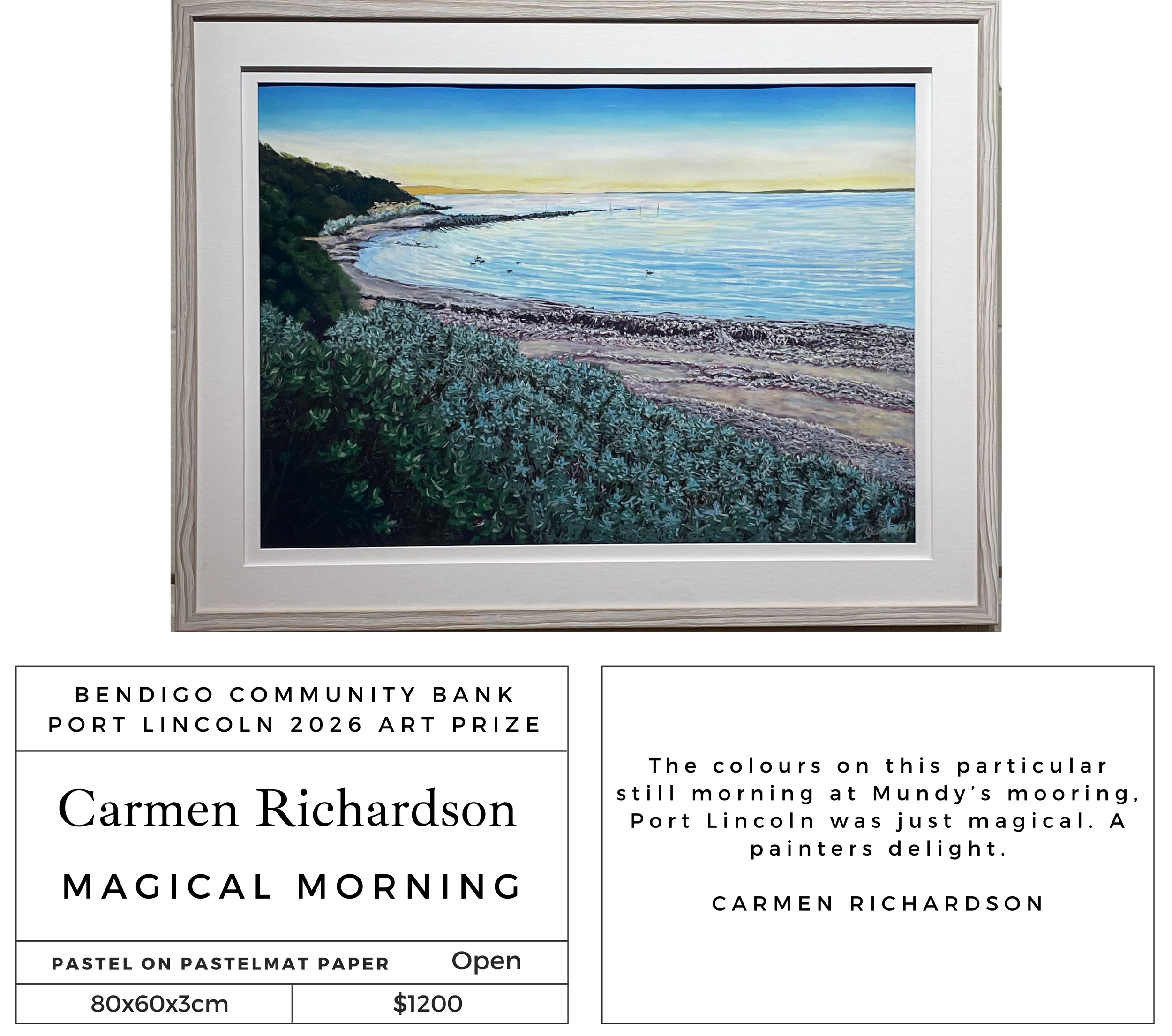 The annual Port Lincoln Art Prize commenced in 2008 and has grown and developed into a significant award and exhibition for the region attracting artwork from Australia wide.