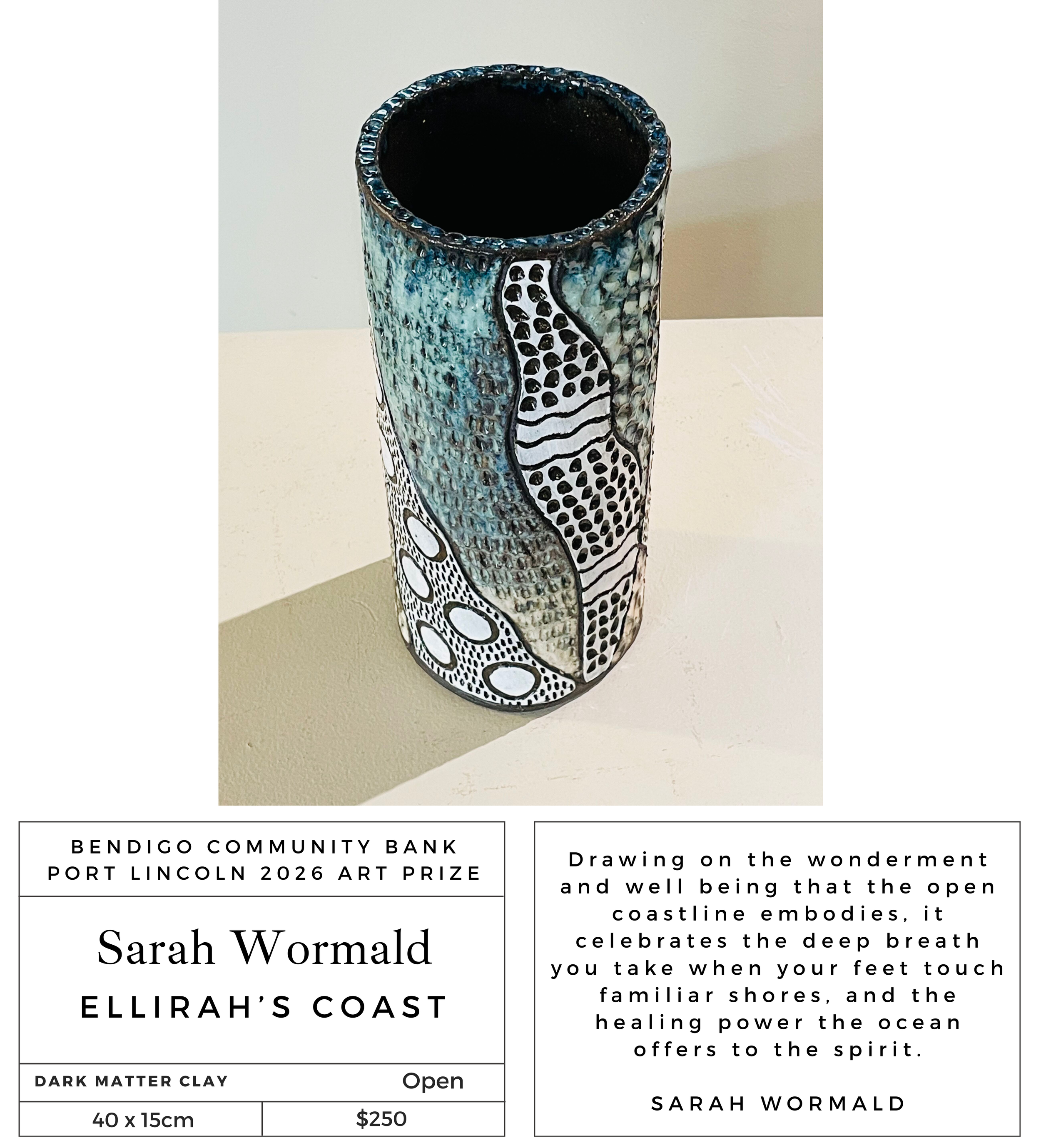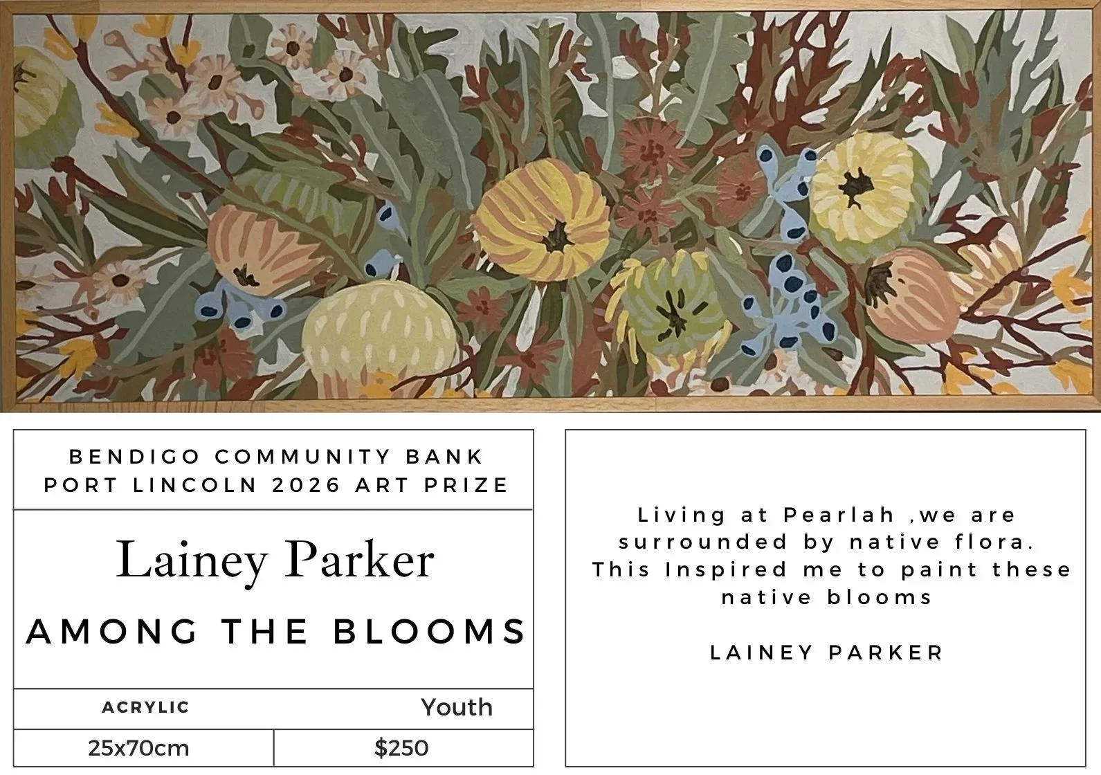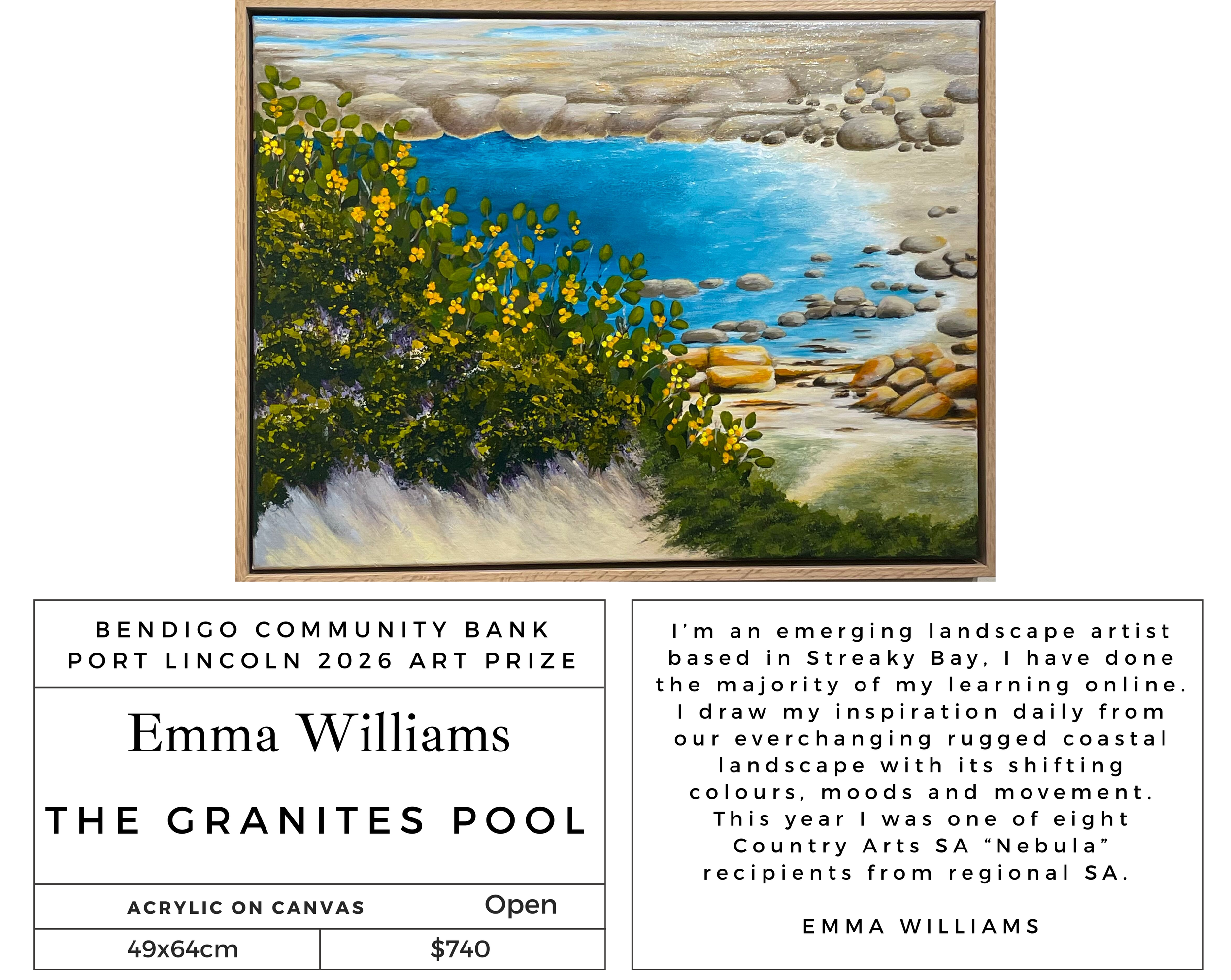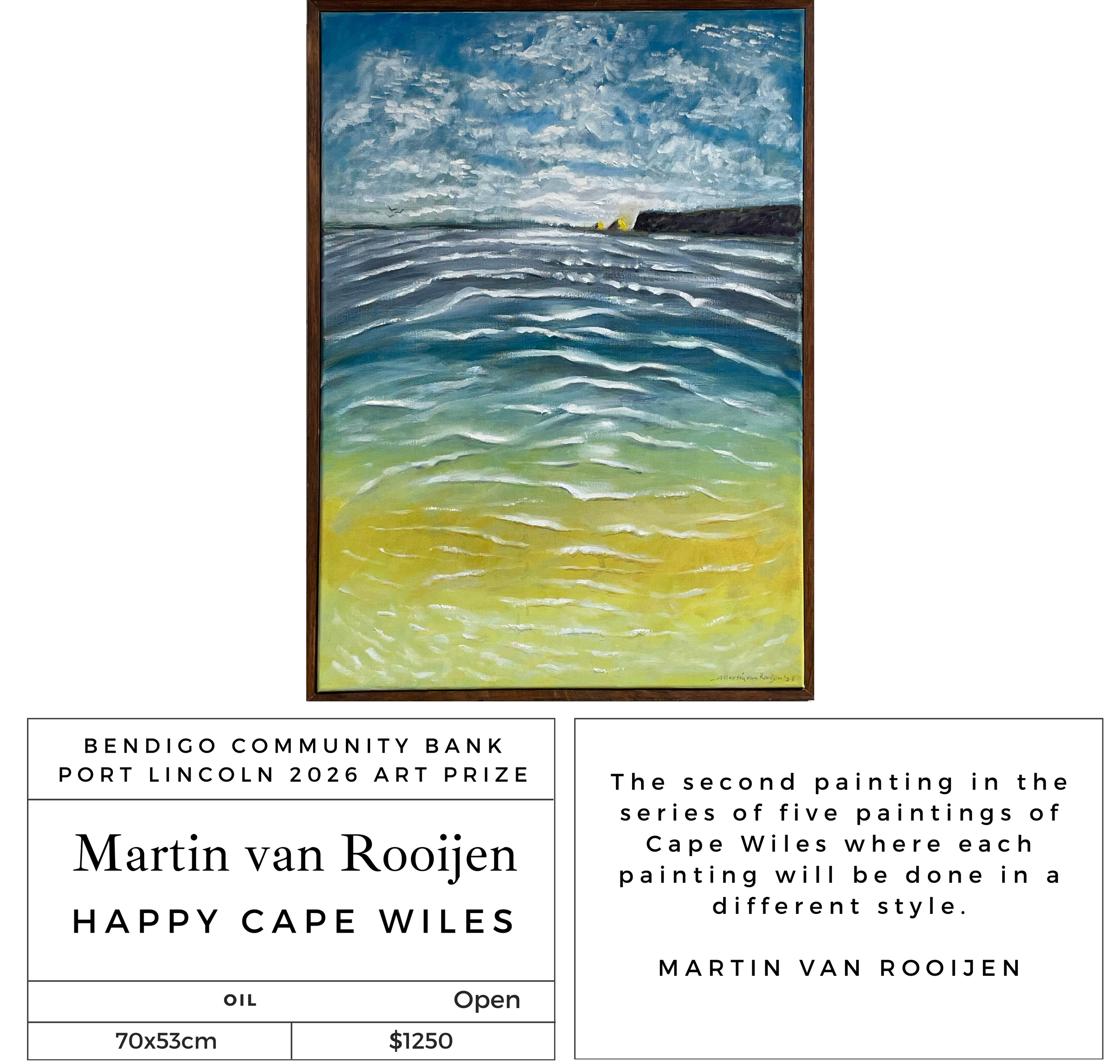 The annual Port Lincoln Art Prize commenced in 2008 and has grown and developed into a significant award and exhibition for the region attracting artwork from Australia wide.