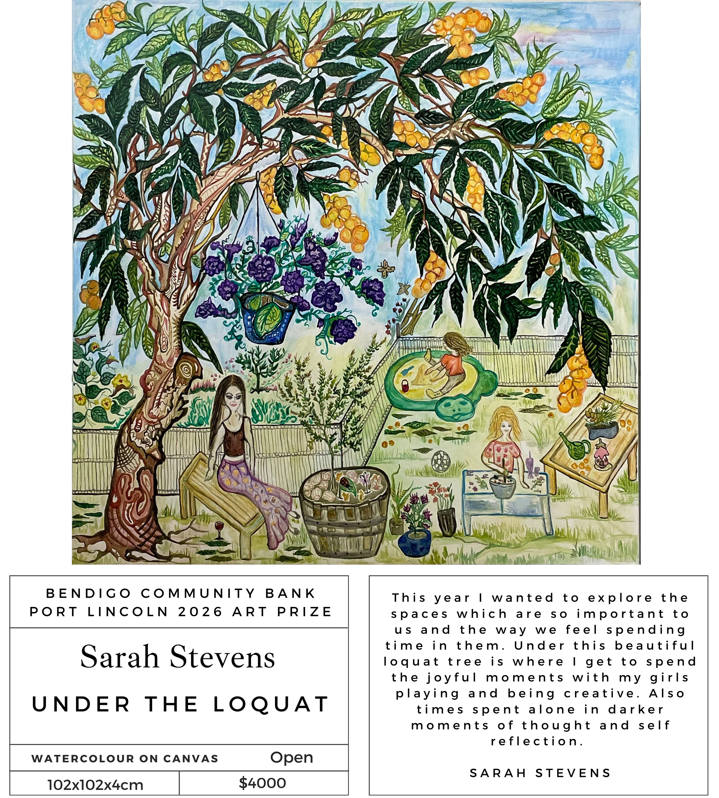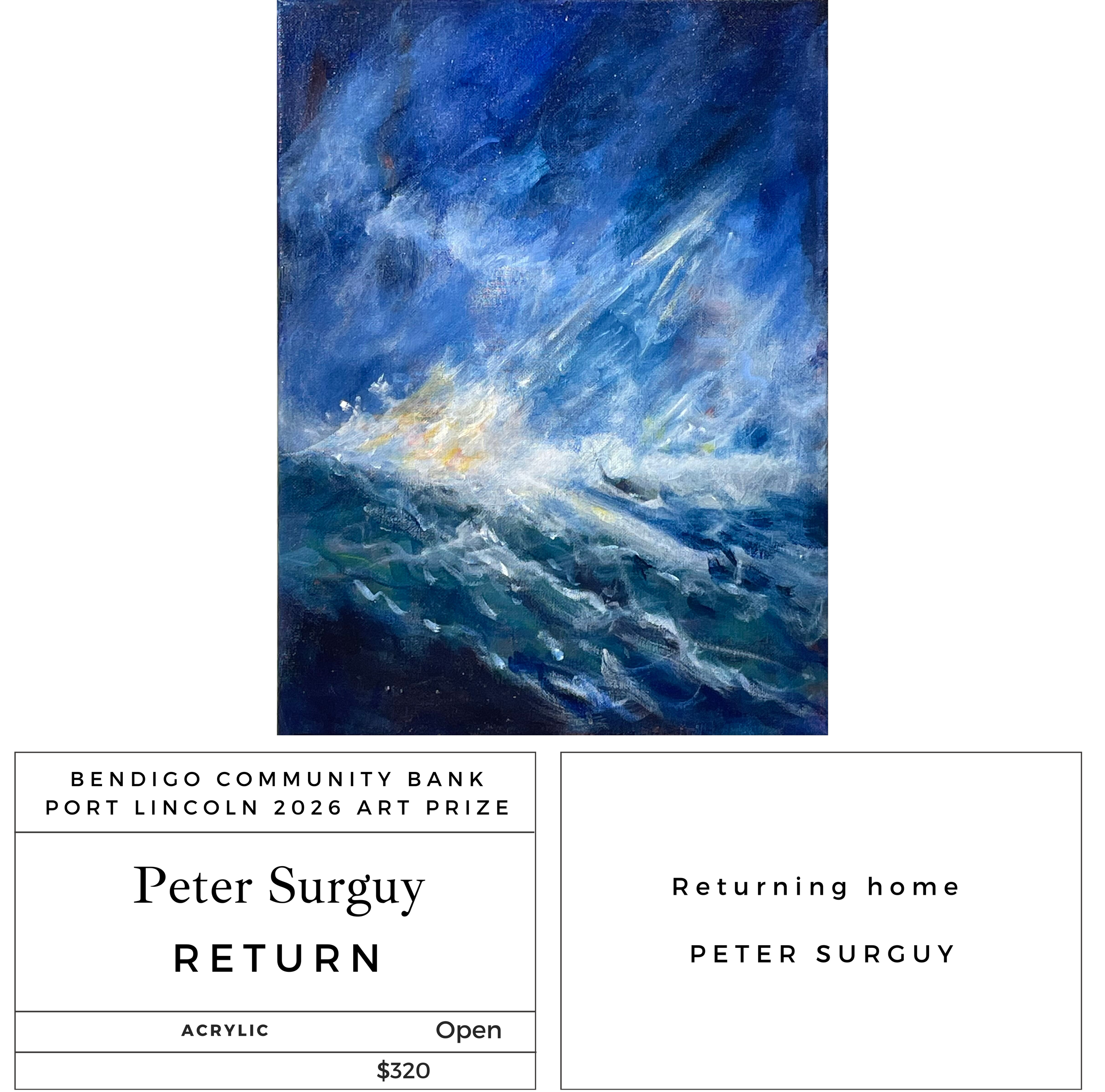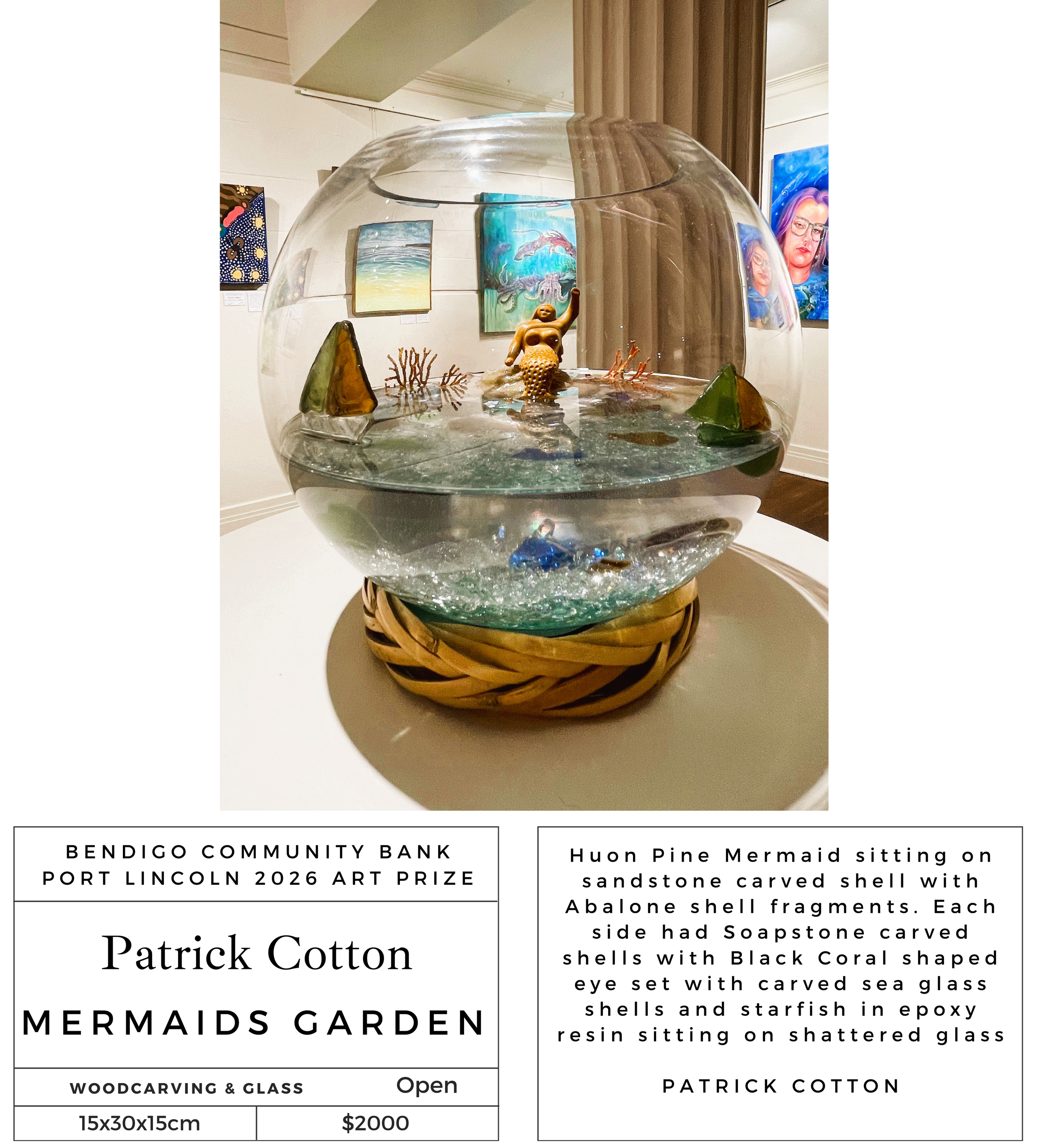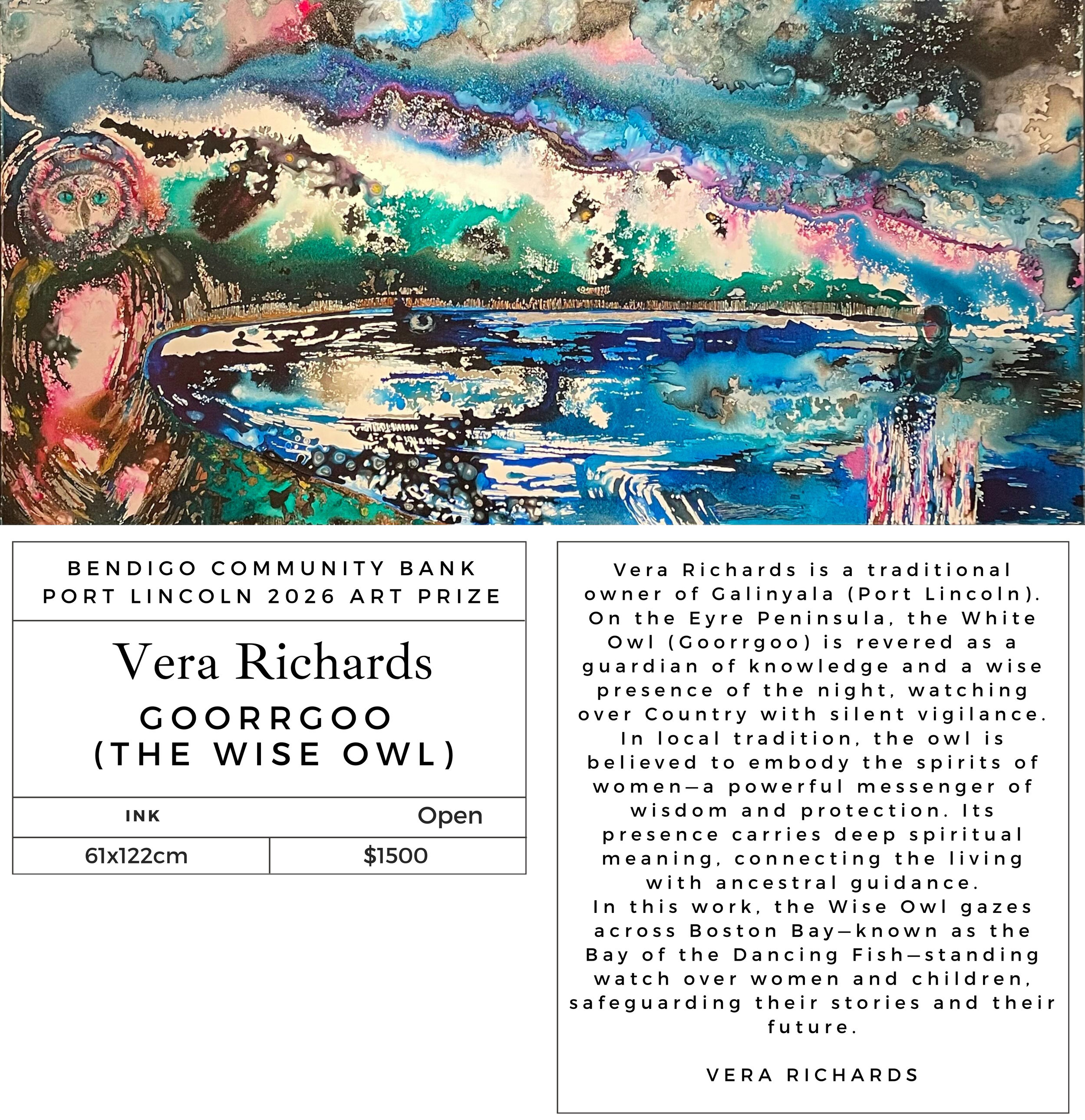 The Bendigo Community Bank Port Lincoln Art Prize exhibition is an annual event open to all Australian residents. The Port Lincoln Art Prize provides a prestigious competition for the many artists who enter and the opportunity to have their efforts publicly acknowledged with the chance to win cash prizes.