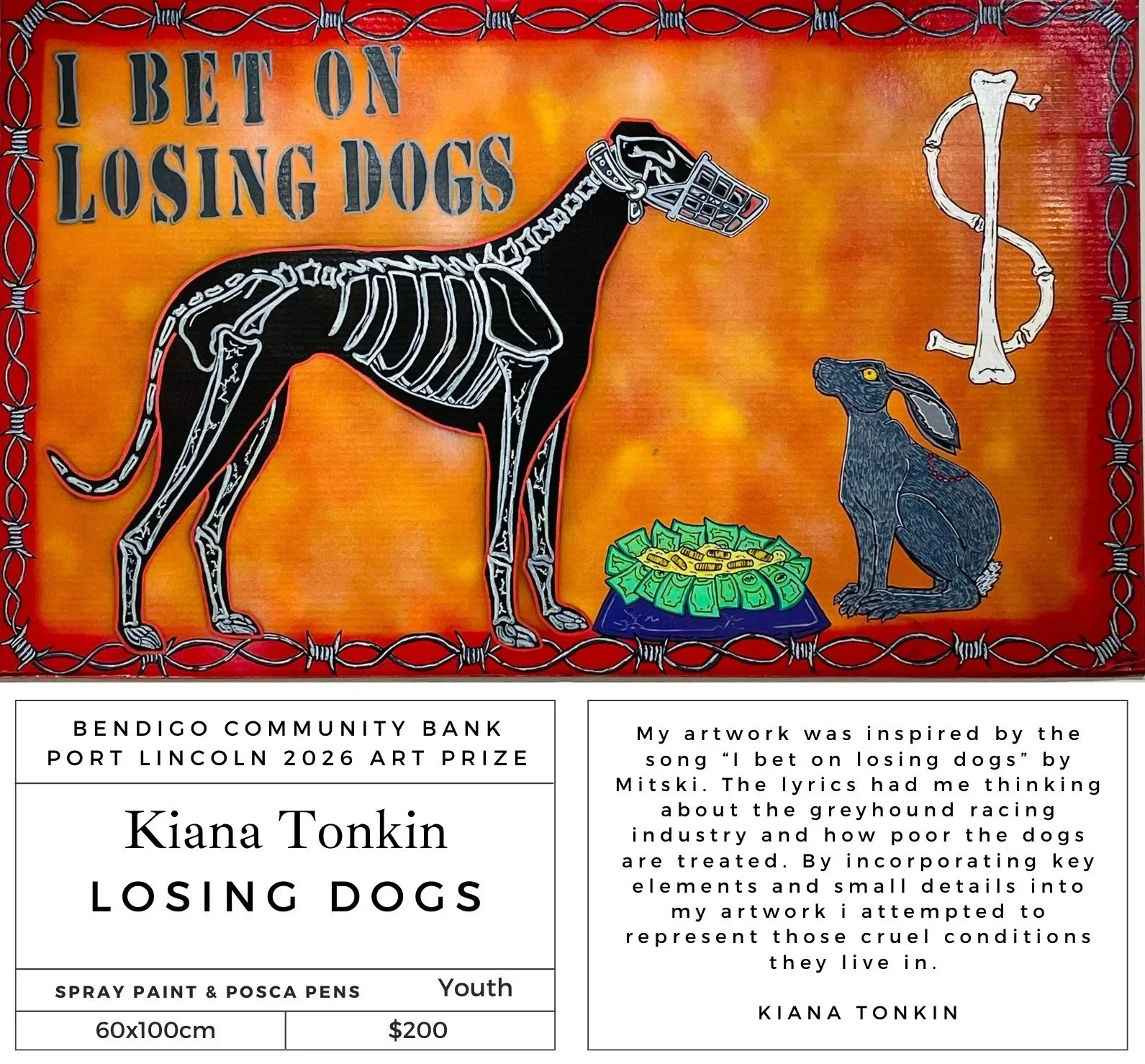 Kiana Tonkin, “DEVIL”, Spray Paint & Posca Pens, 60x100cm, $200.